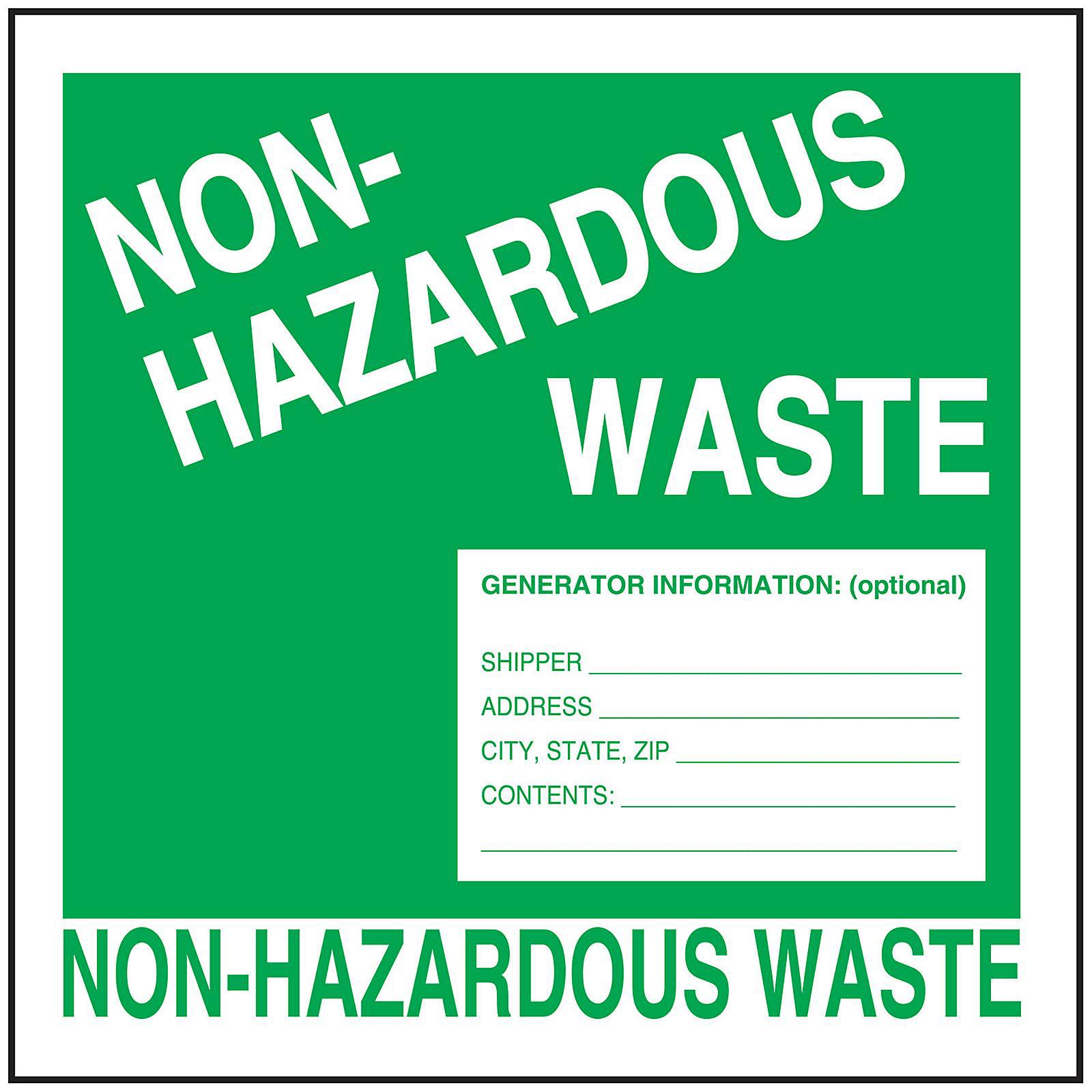 "Non-Hazardous Waste" Labels - 6 x 6". S